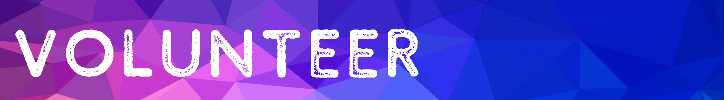 On purple pink blue background, on the left the word Volunteer.